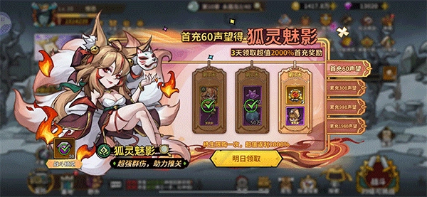 1. 不妨考虑首充6元赠送的狐灵魅影 - 阿离,结合升级、登录以及游戏过程中赠送的各类福利,阿离很容易就能升至6星,在前期可将其作为主C使用。