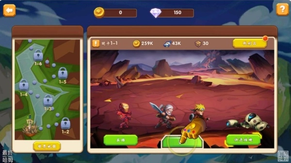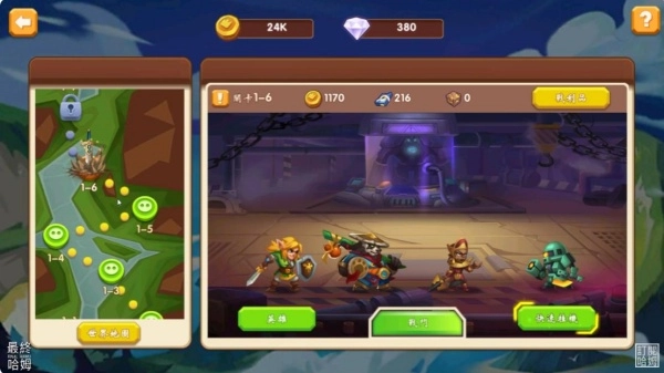 2、选择英雄并进行升级、装备强化,搭配合理阵容迎接首波丧尸攻势。
