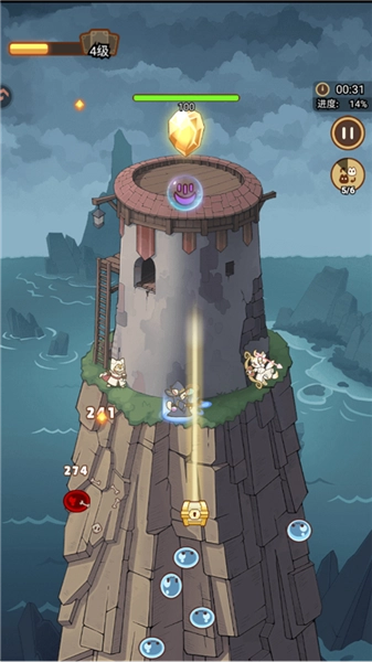 3、割草体验拉满,尽享极致畅快:当猫咪们一同释放绚丽技能,满屏特效宛如璀璨烟花瞬间绽放!成群结队的敌人,在猫咪们的愤怒攻势下,如脆弱草芥般被迅速收割。这将为您带来无与伦比的视觉震撼,同时让您尽情享受解压的愉悦感!