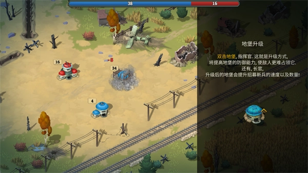 3、通过双击己方的地堡就可升级地堡,增加地堡防御和增兵速度。