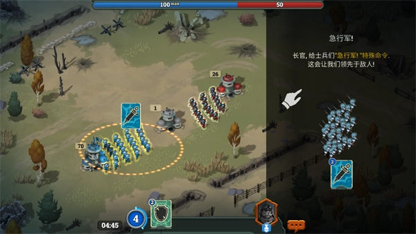 5、当与敌人同时攻占同一个地堡时,可以使用急行军,快速攻占,可以随后可以借用地堡的防御加成抵御更多的敌人。