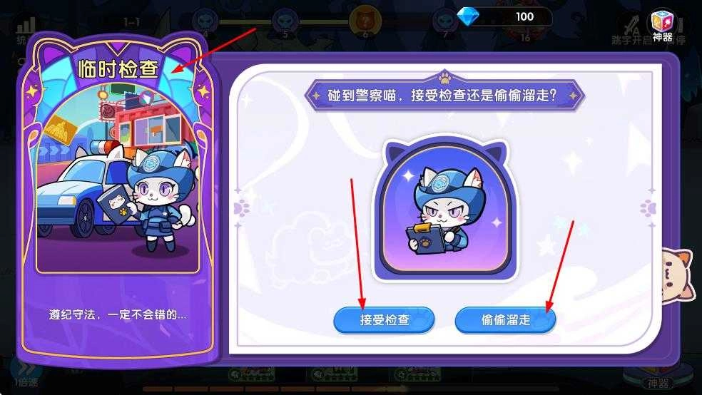 4、遇临时检查事件,想稳选接受检查,想冒险选偷偷溜走,不同选择影响后续游戏进程,按需抉择。