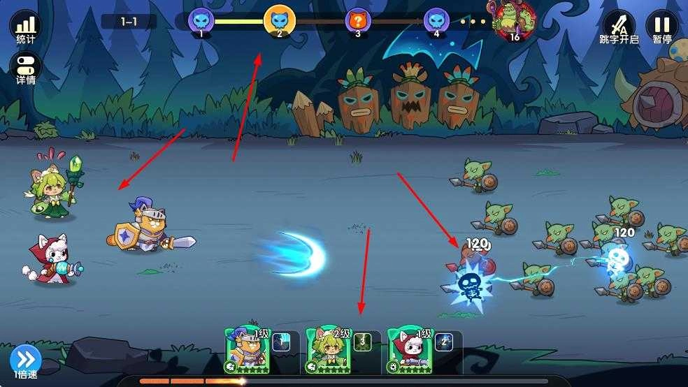 2、战斗时关注角色等级与敌人波次,派高等级角色抗伤,利用技能清怪,推进关卡,注意小怪攻击。