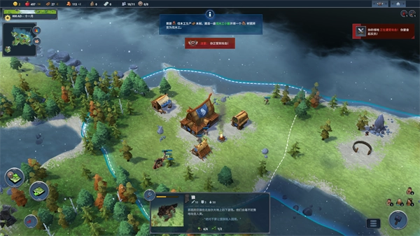 9、建造玩侦查营并派遣侦查员后,他们会帮助你探查不同的区域,让你可以发现石矿、遗迹、符文等内容,但是区域中如果存在敌人你就不能进行殖民,需要先建造训练营派遣士兵击败区域中的敌人。