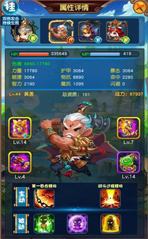 因上演“苦肉计”而广为人知的黄盖,在游戏里的定位同样是“肉盾”。作为力量型佣兵的典型,黄盖的力量成长极为出色。力量属性的提升会带来血量的增加,从图中可以明显看出,当等级与装备达到一定程度时,黄盖堪称团队承受伤害的核心!